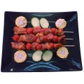 Brochetas de cerdo ecológico con tomates cherry acompañado de la salsa que más guste.